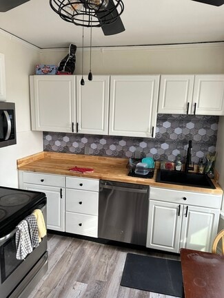 4 bedroom and 1 full bath. stainless steel appliances Including dishwasher and microwave . new windows and lots of storage in the attic and enclosed back porch. The rent includes heat hot water,laundry and garbage,snow removal. 3 of 4 bedrooms are large enough for