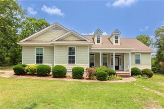 Welcome to Your Private Resort in the Heart of Georgia! This exceptional 3-bedroom, 2.5-bath home offers luxury living on gorgeous wooded acreage with quality construction and resort-style amenities. Inside, you'll find high ceilings, heavy crown molding, tray ceilings in all bedrooms, and beautiful hardwood and tile flooring. The upgraded kitchen is perfect for both everyday living and