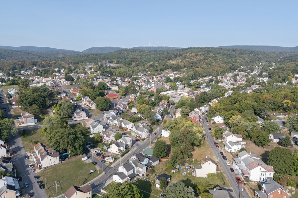 Mountains loom over the East Juniata neighborhood with an undulating landscape below.