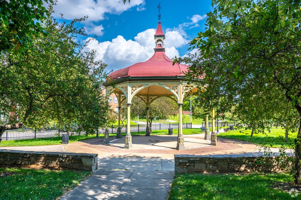Though a small neighborhood with less than 800 people, multiple recreational spaces are within reach. Perkins Spring Square Park is at the heart of the community off Myrtle Avenue. Once the site of a natural spring that provided drinking water to local citizens, Perkins Square includes its original gazebo from 1900, giving the park a historic charm. Robert C. Marshall Recreation Center is located half a mile away and consists of an indoor basketball court and an accompanying park with tennis courts and open field space.