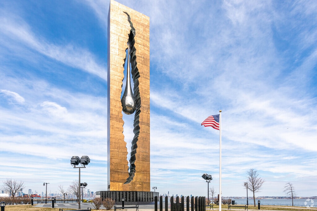 Park space in Bayonne is concentrated on the north side, facing Newark Bay. Most of this area is taken up by Gregg Park, which spreads across 100 acres. Many athletic facilities are available so that visitors can play basketball, pickleball, tennis and bocce. A bright blue running track adds another active element. Kids have access to a playground and, in the summer, a spray pad. Gregg Park is equally a place to lounge and relax – fishers will be seen casting their lines into the bay. Perhaps one of the most popular uses is taking a stroll on the paved paths, enjoying the ornate stone structures that offer shade and a place to catch one’s breath.