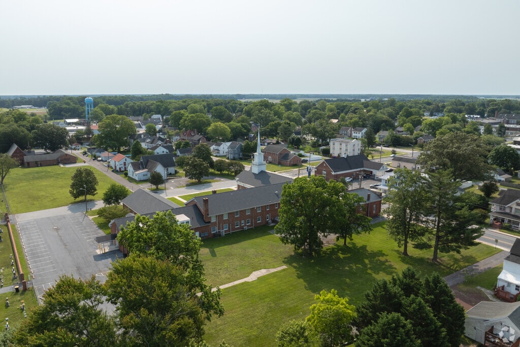 U.S. Route 13, also called the Sussex Highway, is Bridgeville’s main thoroughfare, leading 8 miles south to Seaford and 30 miles north to Dover. Delaware’s DART bus system stops in Bridgeville and has routes to surrounding towns. Many of the area’s roads are bike-friendly. Houses of worship include Union Methodist Church and Mount Olive Baptist Church. TidalHealth Nanticoke, the closest hospital, is 8 miles away. Salisbury Regional Airport is 31 miles away and has flights to Philadelphia and Charlotte; Baltimore/Washington International Airport is an 81-mile trip.