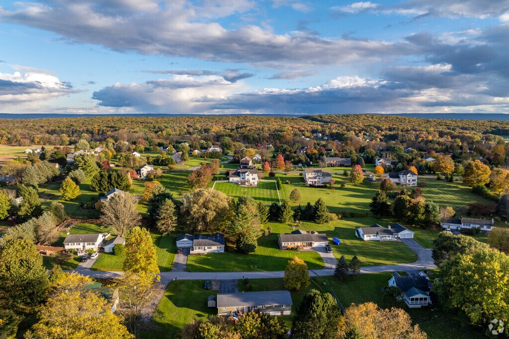 Homebuyers can find split-level homes from the late 1900s and contemporary-style houses from the 2000s. Homes are clustered in suburban subdivisions with lot sizes averaging about an acre and extending up to 15 acres. Houses feature long driveways and usually come with attached garages. Properties here tend to stay on the market for about three weeks and range from $350,000 to $650,000. The CAP Index gives Halfmoon Township a crime score of 1 out of 10, which is lower than the national average of 4.