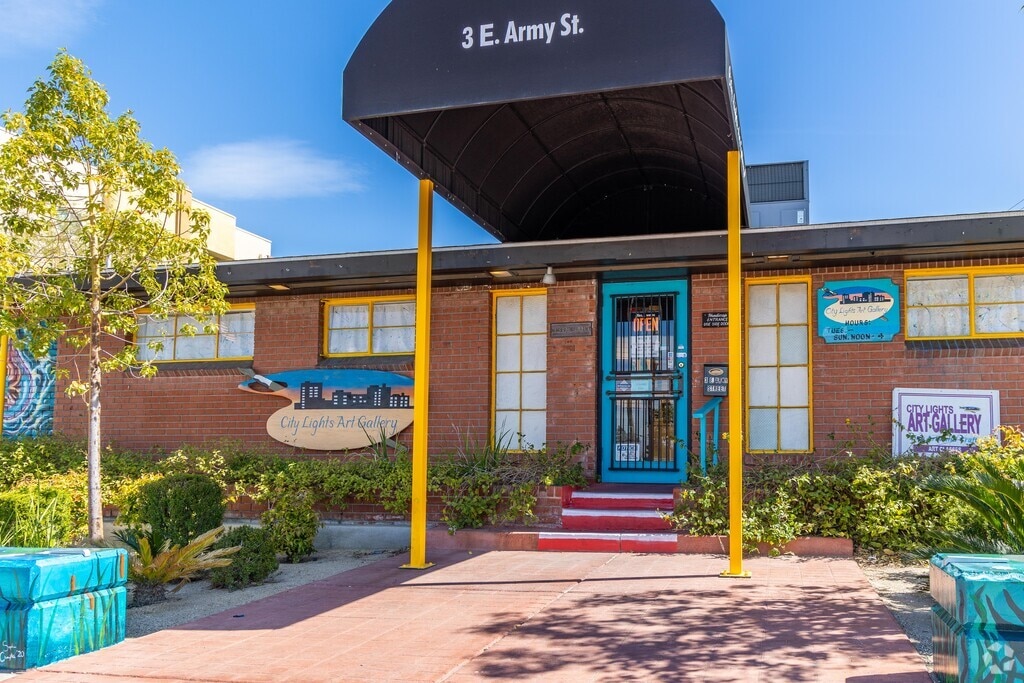 City Lights Art Gallery patrons view local art that is regularly updated and exhibited.