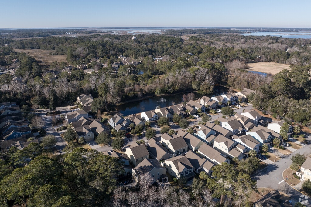 Driving through Squire Pope reveals the area’s densely wooded backdrop. Oak trees stretch their branches above and over the roads. Off the main roads are cul-de-sacs and other communities filled with several types of housing. New Traditional and Mediterranean-influenced houses built in the 2000s can range from $400,000 to $1.2 million, depending on size and proximity to the water. Condos at Marsh Side Villas were built in the 1980s and can range from $190,000 to $350,000.