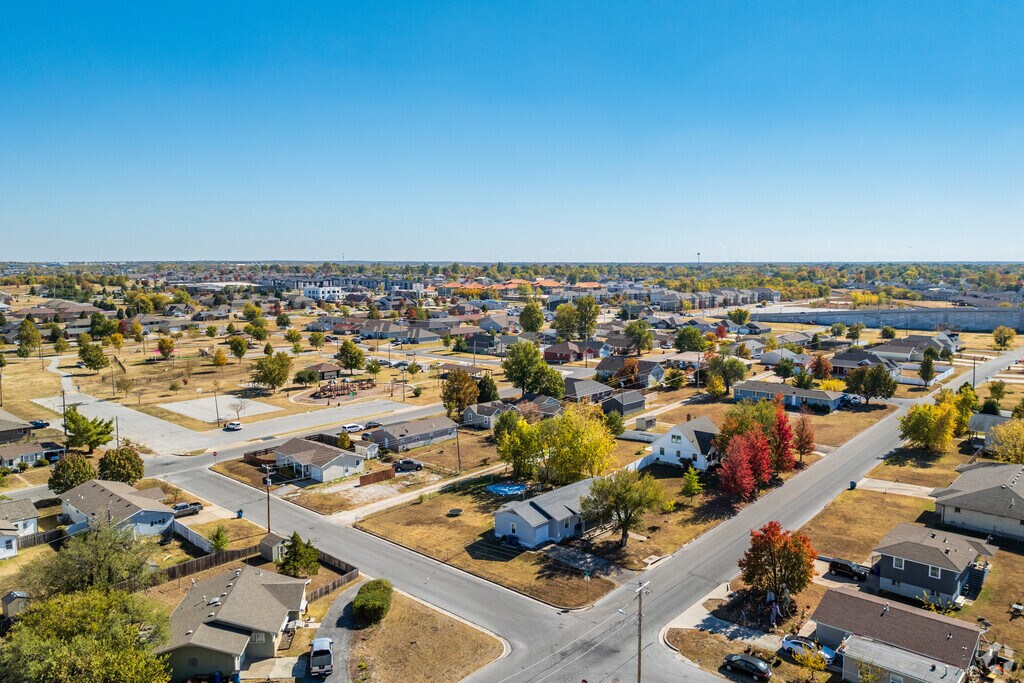 Single-family homes surround the park, many of which have a direct view of the green space. Since this area was destroyed by the tornado, most properties are newer than 2011, while there are also some midcentury ranch-style homes. Most lots are occupied, but new construction continues. These homes have a contemporary look with a double gable-front design and attached two-car garages. Others mimic more traditional styles such as Cape Cods and Tudors. Prices range from $210,000 to $270,000. This neighborhood's mature trees have yet to grow back, giving the neighborhood an open, airy feel without much shade. Although there aren't many sidewalks, it's a quick trek to neighborhood amenities.