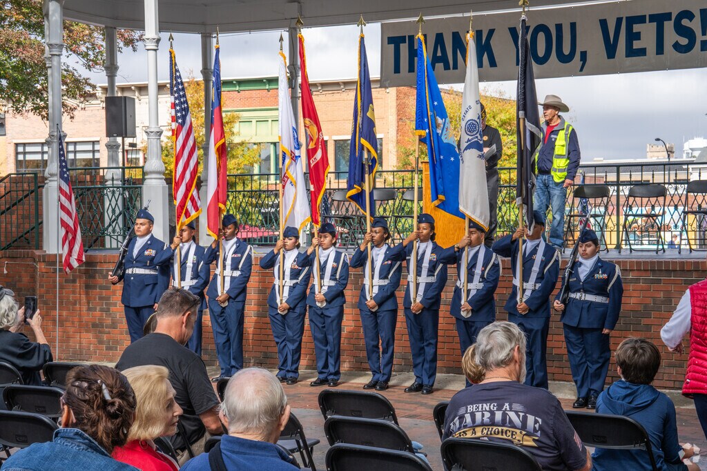 Veterans ride in floats at the Veterans Day Parade not far from Frasier in Downtown Marietta.
