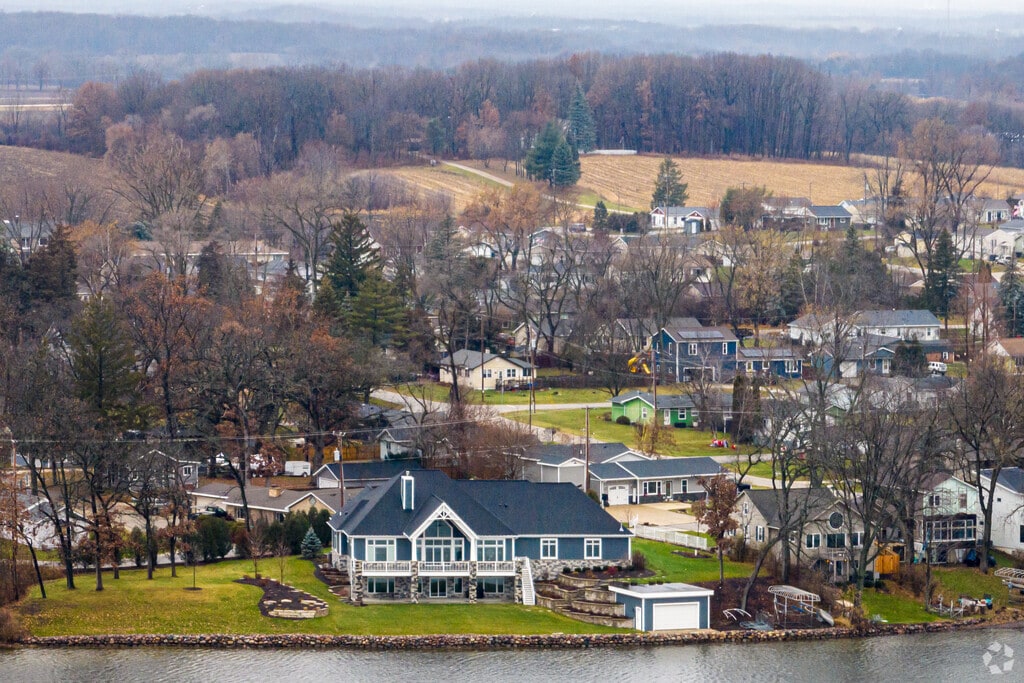Clusters of homes surround both lakes, as the lakes serve as the focal points of the community. Waterfront properties provide exclusive access to boat launches and picturesque backyard lake views. The predominant housing styles include ranch-style, bi-level properties and Craftsman homes. These homes are situated on single and double lots, featuring personal car garages and driveways. Prospective homebuyers can anticipate prices starting at $215,000, with lakefront homes offering panoramic views exceeding $500,000. Land plots are also available for purchase, starting at $65,000. Residents largely rely on personal vehicles to navigate through the cozy residential roads.