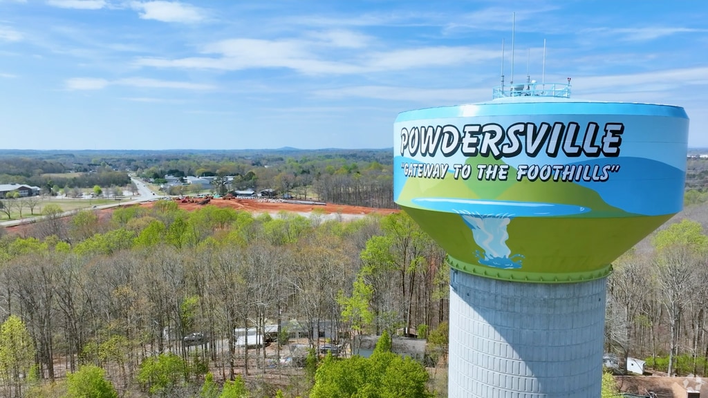The Powdersville water tower stands tall over the community, proudly displaying the town’s slogan, “Gateway to the Foothills.”