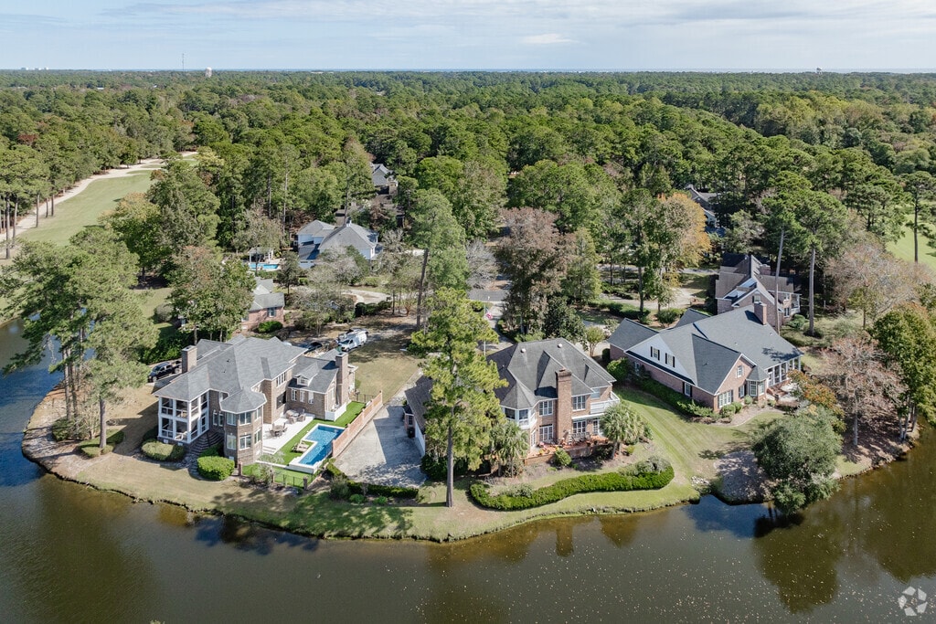 Most of Wachesaw Plantation’s homes were built in the late 1980s through the 2000s and have a classic turn-of-the-century look. New traditional homes with brick facades and Lowcountry-style properties with wide porches and dormer windows are some of the most common here. Homes under 3,000 square feet range from $400,000 to $700,000, while larger residences sell for $700,000 to $1 million. Wachesaw Plantation also has some townhouses priced between $400,000 to $500,000. Every section of the community is built into thousands of towering live oaks along winding roads. “When you drive into Wachesaw Plantation, the first thing that hits you is it’s elegant; it’s an authentic Southern landscape,” says Mel Nordstrom, a Realtor with Keller Williams Innovate South who has lived in the Grand Strand for over 15 years. Coastal flooding is common after heavy rainfall, and homes close to the river are more likely to be impacted by rising water levels. The neighborhood also has 24/7 security and a manned gate, contributing to its desirable CAP Index Crime Score of 2 out of 10.