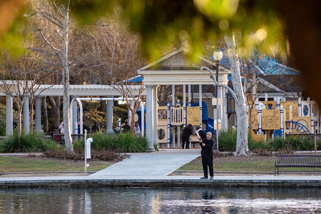 Within Harveston, serenity is the goal. The swooping streets that jut out from Harveston Drive encircle a centerpiece lake, offering panoramic views to homes with waterfront backyards. But no matter where in the neighborhood, one- and two-story single-family homes and condominiums sit on small, colorful yards filled with ginkgo, palm and persimmon trees that cast shade onto freshly-paved sidewalks. As far as designs go, some homes go fully Spanish-style with their stucco exteriors and red terracotta roofs, while others adopt a new traditional style with subtler nods to Spanish designs. Pricing is fairly consistent with the rest of Temecula, offering marginally lower buy-in on average. Single-family homes often start at $600,000 or above, up to about $900,000. Condos sell for around $500,000 to $600,000.