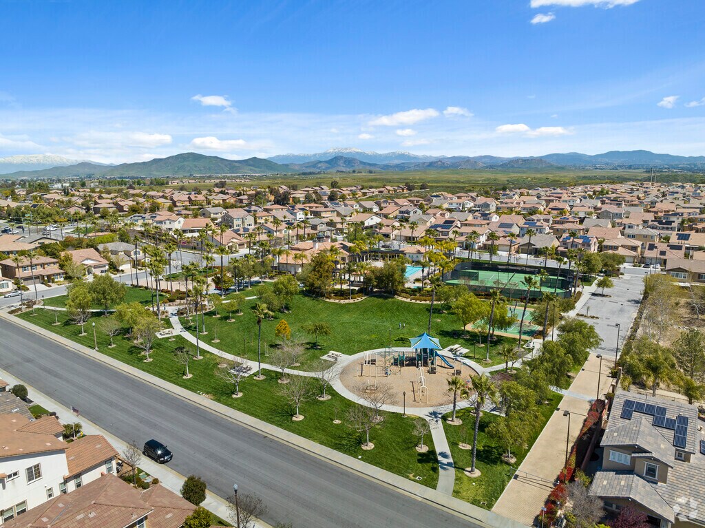 The Roripaugh Ranch HOA features a large lap pool with a connecting splash pool for toddlers and a jacuzzi, plus an adjacent community center. There is also a 22-acre outdoor sports complex. Outside the neighborhood nearby French Valley and downtown Temecula offer a wealth of amenities. The Center for Natural Lands Management owns the land adjacent to the neighborhood, and residents can access a network of bike paths across the street, summitting the aptly named White Cross Trail to stand atop a 1,600-foot peak next to a homemade, life-sized cross. Lake Skinner is about 10 miles east with camping, boating, swimming and horseback riding amid rocky mountains dotted with evergreens. Golfers can choose from over 10 courses nearby, including The Legends Golf Club, which has a picturesque 18-hole course.