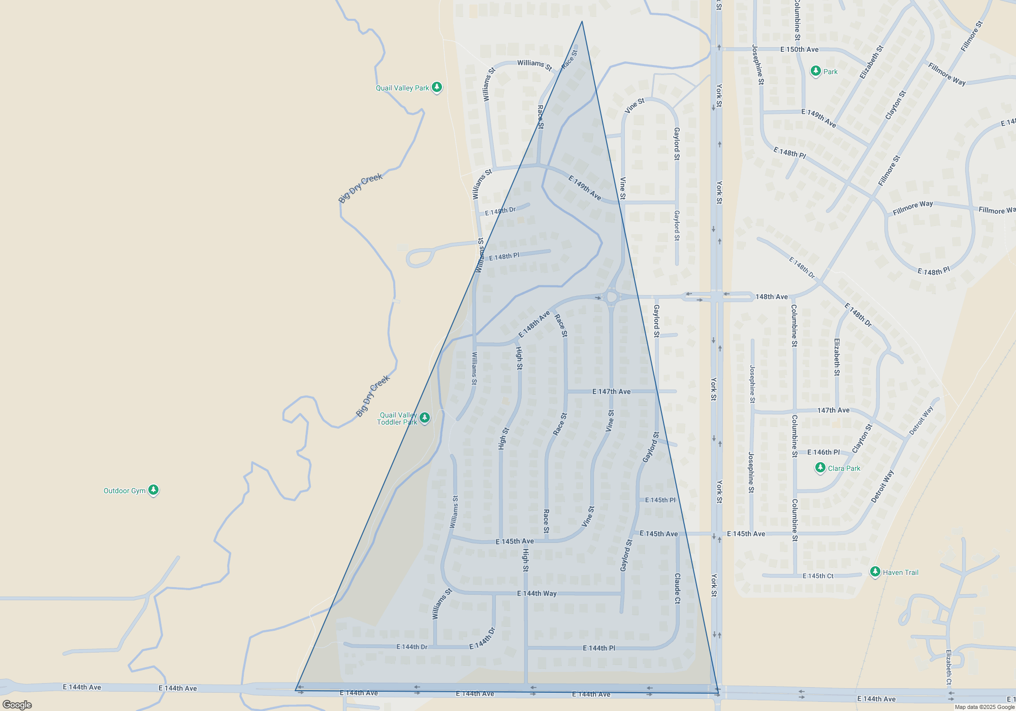 Quail Valley from above—where winding streets meet wide-open skies in the heart of Thornton, CO.