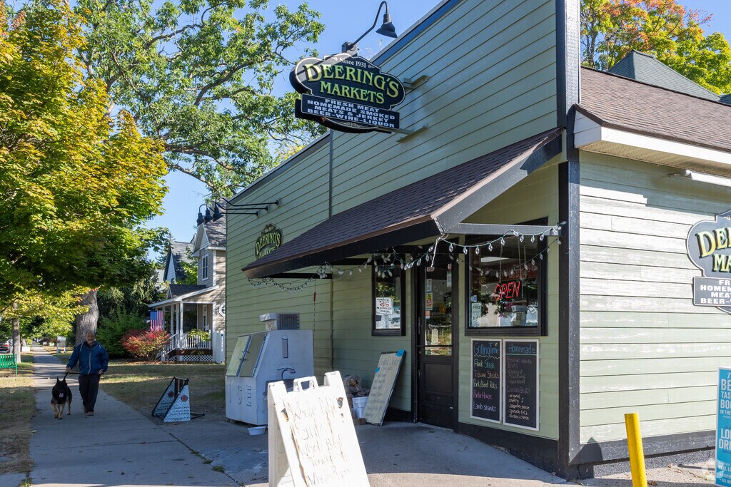 In the evenings, locals meet up at Brady’s Bar for casual drinks and a plate of the self-proclaimed “Best Wings in Traverse City.” Across the neighborhood on East Fourteenth Street, whiskey aficionados can sample Traverse City Whiskey Company’s distilled drinks or take a cocktail class and learn to mix premium cocktails at home. Shops, fitness studios and beauty salons line South Union Street. Locals get groceries at Tom’s Food Market, just south of Central, and make quick stops at Deering Meat Market or Oryana Community Co-op for specialty products.