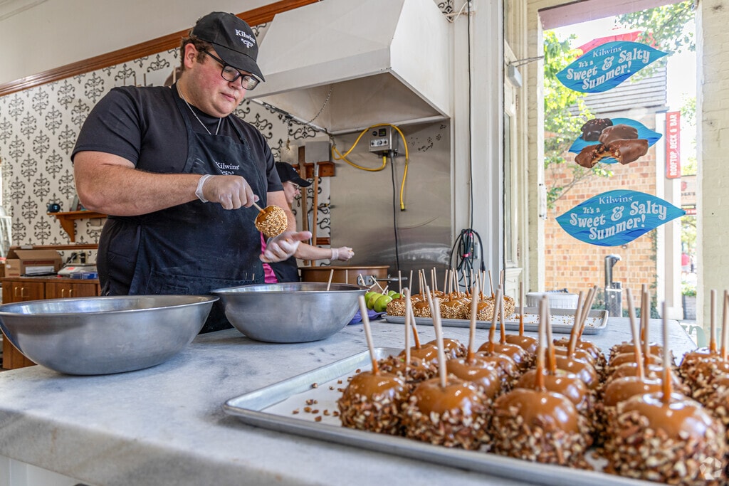 One of the neighborhood’s biggest draws is its dining scene. Traverse City showcases some of Michigan’s best restaurants, including Poppycocks, a New American restaurant known for its live jazz and martini menu. For a casual meal, there’s Millie & Pepper, a cozy spot serving crepes and tea. After dinner, Le Macaron is a popular stop for French pastries. Front Street's Peace, Love and Little Donuts specializes in a Traverse City delicacy, the cherry pie doughnut.