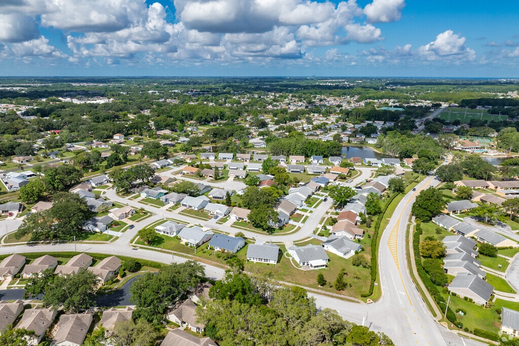 Little Road, a local thoroughfare, borders the neighborhood and connects with nearby Florida State Route 54 for easy access toward Tampa, 34 miles away; downtown New Port Richey is 5 miles northwest via arterial roads. Streets are typically sidewalk-lined, and Pasco County Public Transportation buses stop along Little Road; there aren’t any bike lanes here. HCA Florida Trinity Hospital is 2 miles away, and Tampa International Airport is 35 miles away.