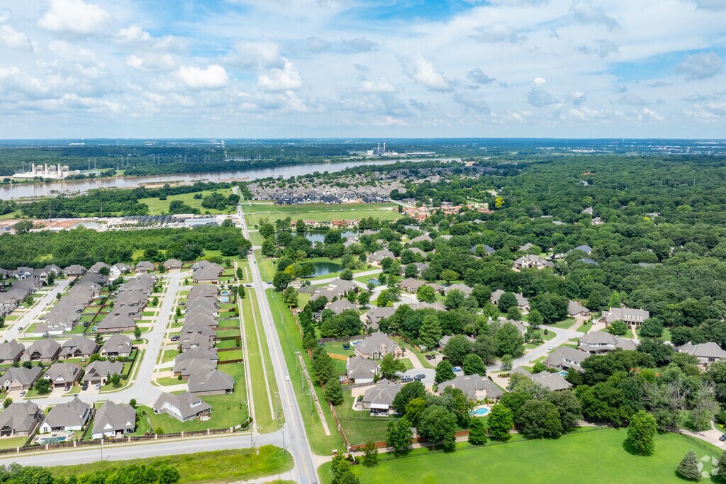 The Creek Turnpike, one of the primary traffic arteries in the Tulsa metro, forms the neighborhood’s northern border and intersects with U.S. Route 64 on its eastern edge. Two major medical centers, Hillcrest Hospital South and Saint Francis Hospital South, are about 3 miles away. Commuters have a 20-mile drive to downtown Tulsa, and Tulsa International Airport is about 17 miles away. Since MetroLink Tulsa’s regular bus routes don’t extend south of the Creek Turnpike, this is a car-dependent neighborhood.