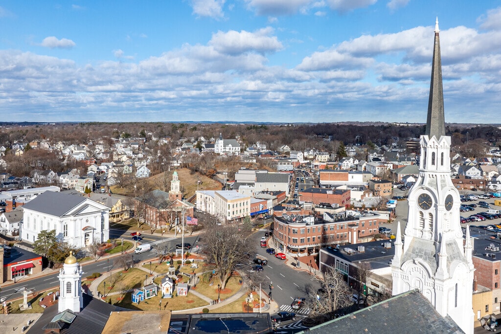 A look down at the historic Common's Park in Woburn, MA.