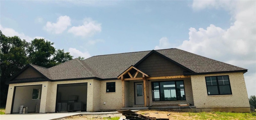 ** New Construction: Brick/Stone and Vinyl Ranch ** 3 Bedrooms, 2 Baths ** Vaulted Great Room and Dining with Beams ** Carriage House Cabinets, Solid-Surface Counters, SS Appliances ** Hardwood Flooring in Great Room, Kitchen, Master Bedroom ** Custom interior trim ** John Deere Room ** All measurements are approximate.