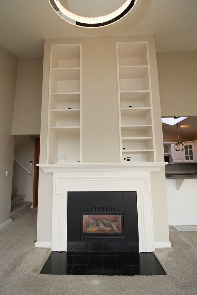 •Vaulted Living Room with wrap-around windows and a fantastic 2 story gas fireplace