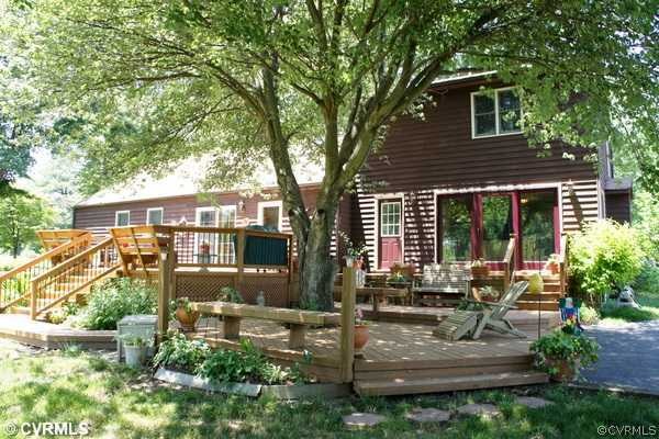 Original Cape ('78) with 2 story addition in '98. 2589 SF. Renovated kitchen w/large dining area, island, Italian tile floor & large pantry overlooking custom deck and yard! Living room currently used as home office, could be formal DR. Two staircases; off Living Room and Family Room. Master Bedroom on 2nd flr w/corner gas log FP, walkin closet, full bath w/jetted tub & separate shower with seat. Adjoining Sitting Room w/skylight! Bedroom 5 w/skykight (2nd flr) and full shower bath. Bedrooms 2, 3 & 4 (1st flr), wood floors. Bedroom 4 has full shower bath attached. Outdoor living at its best! Multilevel decking, large workshed w/elec. Greenhouse w/elec and water. Fenced garden area, fruit trees, shade trees. Paved drive. Appliances stay! NEW 13 Seer HP! NEW GE ceramic top stove!