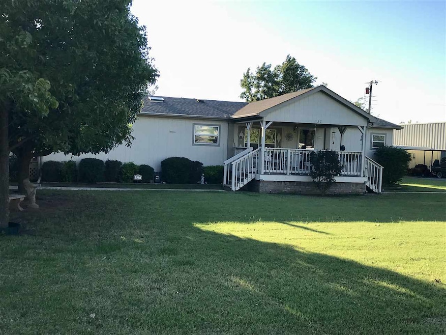 Beautiful 1568 sq. ft. home with concrete runners and piers, and 2x6 walls. Approximately 3 ft. high of brick installed around perimeter of home with installed guttering. Double pane storm windows (lift down from inside). Front porch has indoor/outdoor carpet. Double carport tied into roof line of home. The home is approximately 15 years old located on 1 acre. It is in excellent condition, many extras have continued to be added over the years. There are 3 bedrooms, 2 full baths, large kitchen w/island, skylight, pantry, and abundant cabinet space. Living/Dining has gas log fireplace with mantel and built-in bookshelves on both sides and a patio door that leads to the covered deck in the backyard. The large utility area has broom closet and large cabinet top with plenty of storage with washer/dryer hookup. Large master bedroom with double doors leading in the master bath with garden tub, separate shower and double vanity. Walk-in closes on each side of master bedroom. Beautiful oak cabinets throughout home, tile floors in both baths and both entries. Laminate wood flooring in kitchen and utility. All blinds go w/home including curtains in kitchen and utility, four chairs included around island in kitchen. Refrigerator and dining hutch will also stay. All new light fixtures and ceiling fans have been added in the past. New roof was put on in 2016. Both driveways are asphalt. The backyard is fenced with cellar, a 10x12 metal storage building with concrete floor. A good stand of Bermuda grass is in front and backyard with 6 mature pecan trees. There is a gazebo with concrete floor located on north side of the house. A 30x40 insulated steel shop with concrete floor and garage door. There is also an attached covered carport with concrete floor. Two bi-level metal covered awnings for camper, boat, etc. attached on north side of carport. Sidewalks lead to black top drive on north and south side of home. Located near Lake Ellsworth.