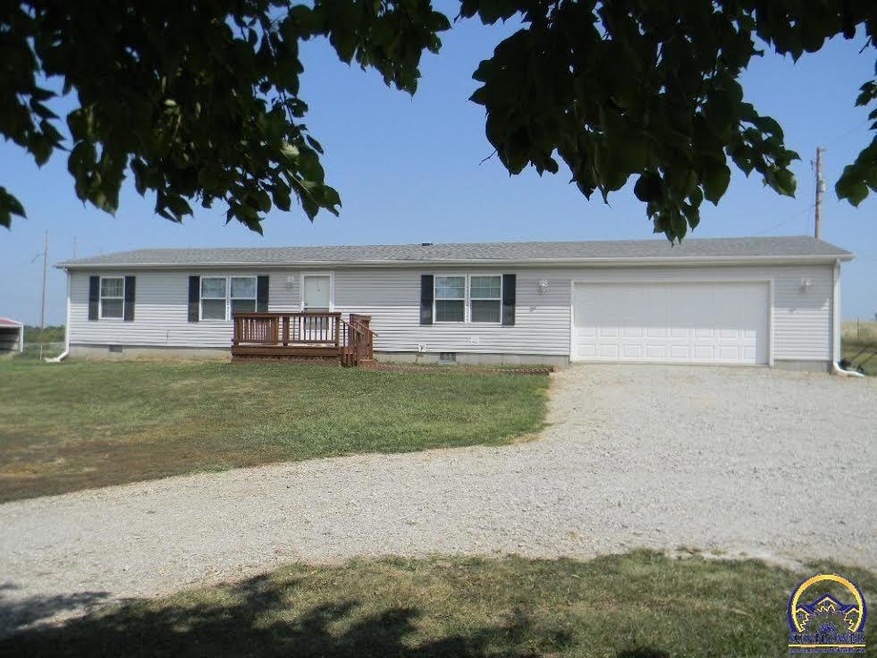 Horse Lovers Dream! 3BR/2BA, oversized 2 car garage, 9.8 acres -fenced. Out buildings - loafing shed! 17 miles from Topeka. Central heat/central air. Vinyl siding. 2003 Manufactured Home on permanent foundation.