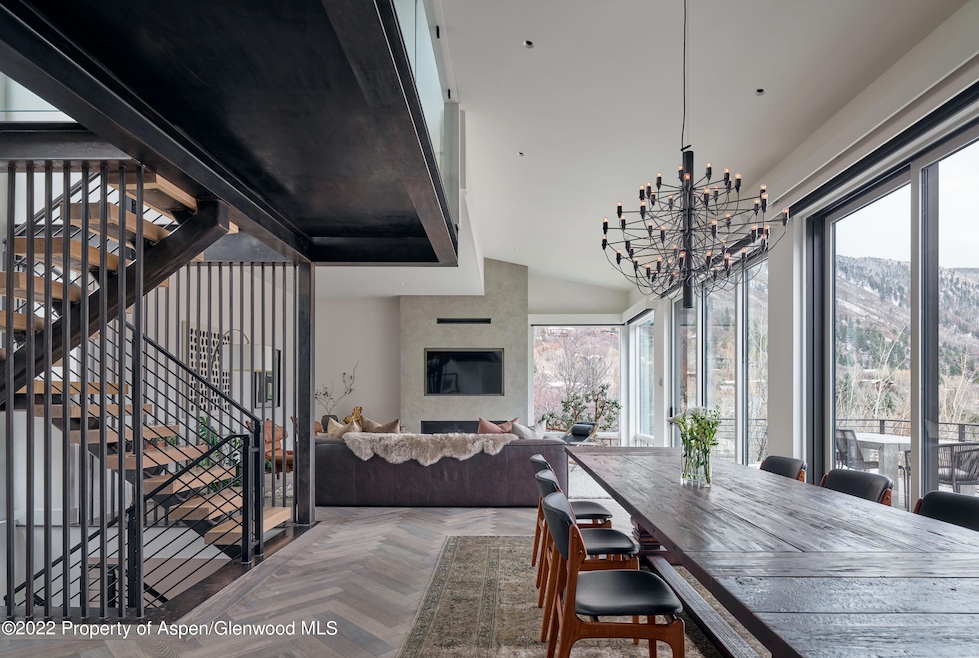 East Aspen is a perennial favorite of Aspenites in the know. Close to downtown with no traffic, Knollwood is one of our favorite neighborhoods. 150 Roaring Fork Drive is a recently remodeled home with a compelling contemporary architectural design exterior and an impeccable blend of cool interior textures and finishes reminiscent of a Tribeca penthouse. An open floor plan with various decks and views, soaring ceilings, and multiple entertaining areas help make this reasonably priced Aspen single-family home the perfect blend of form and function.