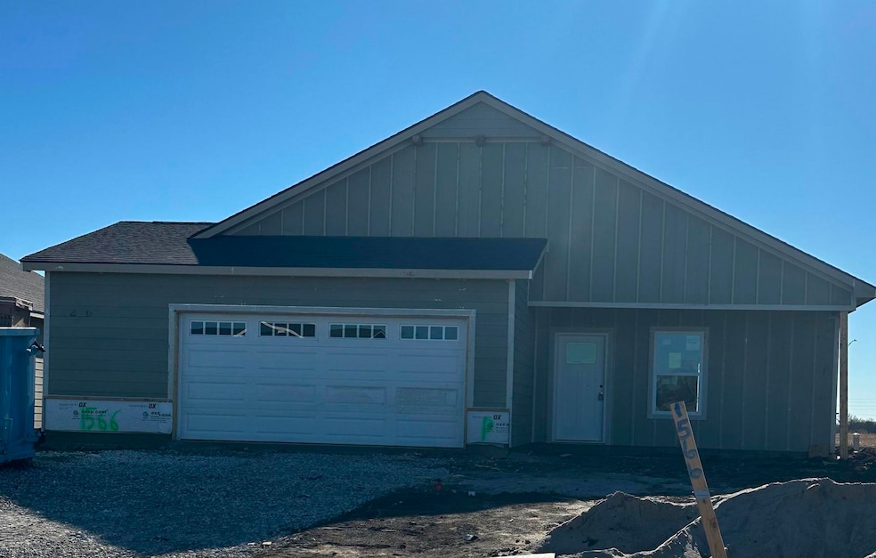 Welcome to the Hamilton floor plan by Liberty Communities! This charming one-story home offers 3 spacious, carpeted bedrooms and 2 full bathrooms, thoughtfully designed for comfort and convenience. You'll love the stylish kitchen with granite countertops, and durable LVP flooring that flows throughout the main living spaces. Additional features include window blinds, a concrete front and back patio perfect for outdoor lounging, and an oversized 2-car garage with a FEMA-approved storm shelter—a major peace-of-mind bonus! Appliances included: stove/oven, microwave, refrigerator, dishwasher, washer, and dryer—so you can move in and get settled without missing a beat. This home also comes complete with irrigation, fresh sod, a tree, and landscaping bushes—just one more reason to love this ready-to-go gem. Built with quality in mind, this home features James Hardie cement siding, high-efficiency HVAC, and window blinds throughout. Interior pictures from previous built floorplan. Interior photos of a previous build. Home is in progress.