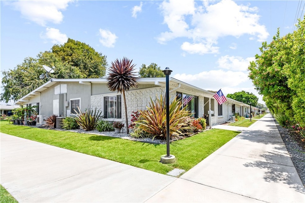 Situated in a lovely & serene location in Mutual 2, this expanded, light filled 2-bedroom 1 bath corner lot home in the amazing 55+ community of Leisure World has been meticulously maintained & beautifully remodeled with timeless finishes throughout. Offering a wonderful open floor plan, this warm & cheerful home features a spacious living/dining room with smooth, vaulted ceilings, recessed lighting, & dual pane windows with plantation shutters seamlessly flowing into the sky lit kitchen updated with elegant tile, newer appliances, and custom cabinetry with abundant storage. The bathroom is graced by similar finishes & includes a walk in glass enclosed shower with bench seat and another skylight for plentiful natural light year-round, while both cozy bedrooms invite you to relax or work as needed. Other notable features include a charming front patio with adjacent concrete pad for possible golf cart parking, proximity to community laundry and assigned parking, central heat & AC, plus access to all this fantastic community has to offer...golf, pickle ball, shopping, churches, pool, spa, clubhouse and the best weather in Southern California!