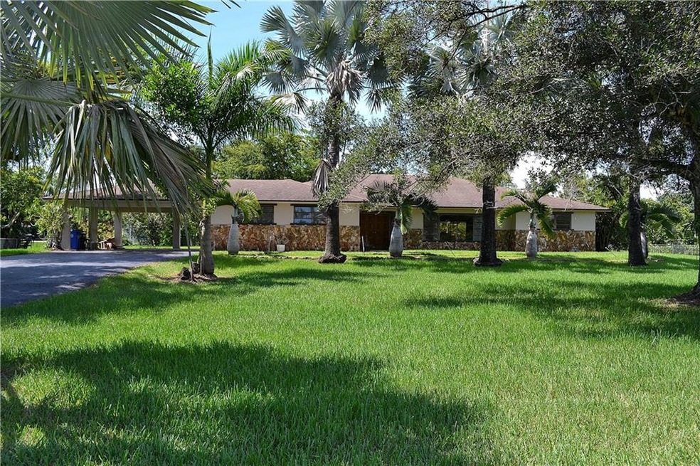 Great Curb Appeal on this Just Renovated SW Ranches 4 bedroom, 2.5 bath Estate, situated on a Gorgeous parcel of nearly 2 acres of Land. Interior has been Completely Updated from Top to Bottom! Brand New Kitchen Cabinets with Quartz counters & Brand New SS Appliances. New Porcelain Wood Tile planks from Spain throughout living area with new carpet in bedrooms, All New Bathrooms with only the Best, Kohler cast iron tubs and premium fixtures with designer tile! New Knockdown ceiling and all New Paint inside and out. All NEW Electrical Panels & Switches. Exterior features fenced yard with electric gate entrance, 2 car garage plus a 2 car carport, huge driveway & Lushly Landscaped with stunning Palms! Additional features include large screened patio, pond, Shed, Newer A/C, Generator & more!