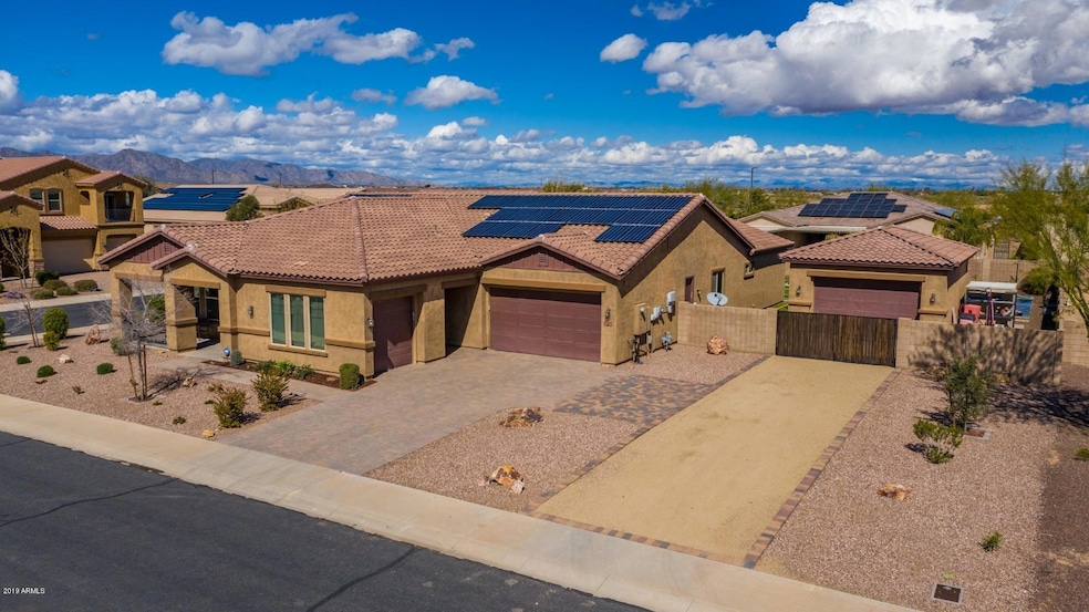 Beautiful single level home in gated community! The only single level home with the optional DETACHED HEATED & COOLED 20'x30' garage..Can be used as STORAGE for your toys , GYM or MAN CAVE! A backyard designed with both kids and adults in mind, features a BUILT IN KITCHEN, PERGOLA & FIRE PIT for adults & a TURF FIELD and BASKETBALL COIURT for the kids. There is still plenty of room for a pool on this corner lot with over 17,000 sq ft! The spacious interior is equally attractive with over 3,400 sq ft of living space. Tile floors & carpet in all the right places, an open kitchen concept with granite counters, ss appliances, 5 bedrooms with split floor plan, 3 full bathrooms & a bonus room/den. THE OWNED SOLAR makes managing the homes already efficient design a delight The brand new Belen Soto Elementary school being constructed is set to open this year, and is within and walking distance.