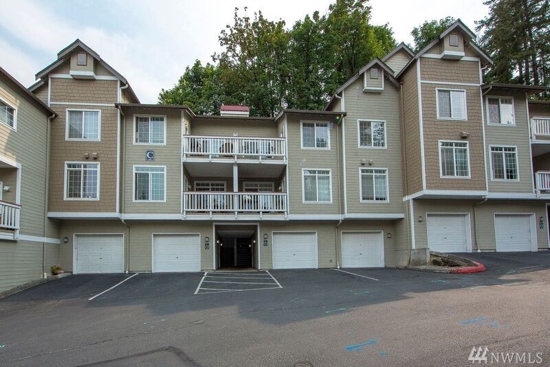 This 2 bedroom, 2 bath, den home boasts a 2 car tandem garage. Relax on your private balcony, large enough to have a patio set and BBQ while looking at Lake Sammamish. Inside this top floor unit you will find granite counter tops and tile floor, a pantry, 2 master closets, and a full size washer/dryer. The master and second bedroom both back to a greenbelt, bringing tranquility and privacy.