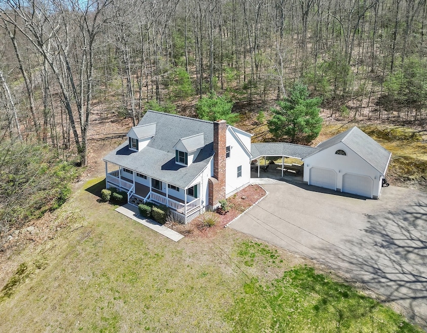 Welcome to your secluded retreat nestled on 2.72 acres. This expansive 5-bedroom, 2-full-bathroom home with 2,000 sqft of living space is perfect in every way! As you approach, a long private driveway leads you to the home set back from the road, ensuring you full privacy. The first floor has 2 bedrooms and a full bath, providing convenience and flexibility for guests or family members seeking single-level living. The second floor, where 3 additional bedrooms, including a stunning master suite, await. The master bedroom features vaulted ceilings that create an airy atmosphere and two walk in closets. A standout feature of the property is the large detached 2-car garage with an additional storage loft above. Outside, enjoy the privacy that provides a picturesque backdrop for outdoor activities and gatherings.