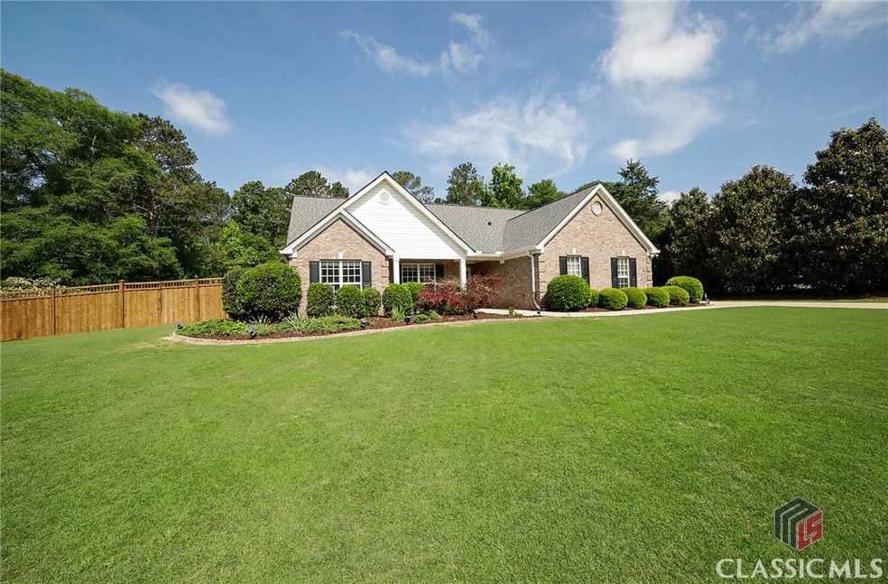 Welcome to your private oasis! Simply awe inspiring, this magnificent all-brick ranch hosted on a .80 acre breathtaking lot is truly what dreams are made of. Impeccably maintained, this striking property is owned by a turf and landscape specialist that has professionally nurtured the grounds to create this sparkling gem. No stone unturned, the home has been inspected, freshly painted throughout the interior, offers an updated kitchen, a 7-camera security system, full-yard irrigation system and so much more. Upon approach, take a moment on the rocking chair front porch to relish in the fragrant blooming flowers and peaceful tranquility that this home exudes. Once inside, you'll be pleased to find a sprawling, single-level plan boasting multiple, inviting living spaces graced with gleaming laminate floors. Centrally located, the Great room commands attention with a masonry fireplace, vaulted ceilings highlighted by upgraded track lighting and provides access with ease. Perfect for guest overflow, media room or home office, the expansive sunroom is a striking addition and presents compelling rear yard views...just wait til you see it!! Spanning the right side of the home is the gourmet kitchen flanked by the breakfast room and formal dining room adorned with tray ceiling and wainscoting. Masterfully renovated, this culinary beauty features custom white cabinets accented by subway tile backsplash, under-cabinetry lighting, pantry with shelving system, glittering quartz countertops, raised breakfast bar seating, complete appliance package, and arched entryways adding the perfect touch of character. Extending through the West wing of the home are 3 cozy bedrooms and 2 updated bathrooms. The laminate floors transition to the bedrooms, as well as offering upgraded ceiling fan light fixtures, and ample closet space. A rare find, the gracious owner’s suite boasts a private, designated sitting room or home office, double tray ceiling and plenty of room for pure relaxation. Providing a more modern touch, the primary lavatory has been updated to host wide-plank tile floors, custom-tiled shower appointed with frameless glass door, soaking tub, dual sink vanity and spacious closet with shelving system. With all the windows traversing the rear of the home, you can’t help but notice the private paradise that awaits you. As you pause on the open air patio, the Bermuda turf lawn maintained at golf-course-level standards encapsulated by the 7ft. craftsman style, privacy fence come alive. Follow the stepping stone path to the sparkling, full size, low-maintenance, saltwater pool equipped with robotic cleaner. Want a pool house, workshop or just extra storage to house your lawn equipment?...The spacious, custom-built workshop is sure to please. In between lounging on the pool patio or taking a dip in the cool waters, practice your swing on your very own authentic putting green. With rising prices or maybe you enjoy your green thumb, either way the rear yard is complete with 11 full sized raised garden beds for your veggies and new tomato support cages. This TOTAL package can be found in the ever-desirable Olde Lexington Trace neighborhood. While offering convenience to everything East Athens has to offer, this serene location also provides a slower pace away from the hustle and bustle. Absolutely stunning, this is one of those hidden gems that you have to see in person to really appreciate all it has to offer!! DRONE TOUR: