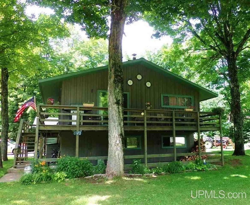 Michigan Waterfront Cabin For Sale! Located in "Three Lakes", an area of south-eastern Baraga County, in Michigan's Upper Peninsula. This property is made up of four Lots, with a combined frontage of over 132 Feet on Petticoat Lake. This is a private lake, with no public access. It covers over 70-Acres, and is about 25 feet deep. The irregularly shaped lake has two miles of shoreline with several bays and coves. These contours provide food, shelter, and spawning areas for its Northern pike, Perch, Pumpkinseed sunfish, Smallmouth bass, and some Walleye. The water warms up in the summer for some great boating and swimming, and groups of Owners get together on their row boats, paddle boats, and pontoons for hours of sunny afternoon relaxation. To protect the serenity of the lake, between the hours of 6:30 p.m. and 10:00 a.m. of the following day, vessels are operated at low speeds, and there is no towing of water skiers, water sledders, or surfboarders. If "the fishing action" on Petticoat isn't great enough, just a mile north is the chain of lakes, 462-Acre Beaufort Lake, 160-Acre George Lake, and the most northern of the lakes, 192-Acre Ruth Lake. All these lakes are surrounded by thousands of acres of Copper County State Forest, and Corporate CFA land, for access to more great fishing and hunting opportunities. Wildlife includes moose, wolves, bear, deer, loons and eagles. The area is also known for Snowmobiling, and there are Multi-Use State Trails for year-round motor sports, and the North Country Trail for hiking and horseback riding are a few miles away. The main east-west Snowmobile Trail No. 8 is about two miles away. A gas-grocery convenience store, bar-restaurants, and unique shops are a few miles away in the historic Village of Michigamme. The two level home features an open concept Living-Dining-Kitchen, two bedrooms and bath on the Upper Floor, and in the Lower Level there is a spacious Recreation Room, third bedroom, and utility room. There is a beautiful wrap-around deck with access from the Living Room for outdoor entertainment and views of the lake. Please contact us for your Private Showing of this cabin and surrounding U.P. Recreational Paradise! ..... (Joining of the Lake Association is Voluntary. $30 Annual Association Fee is used for fish stocking and other lake projects. Members are provided access to association maintained launch site.)