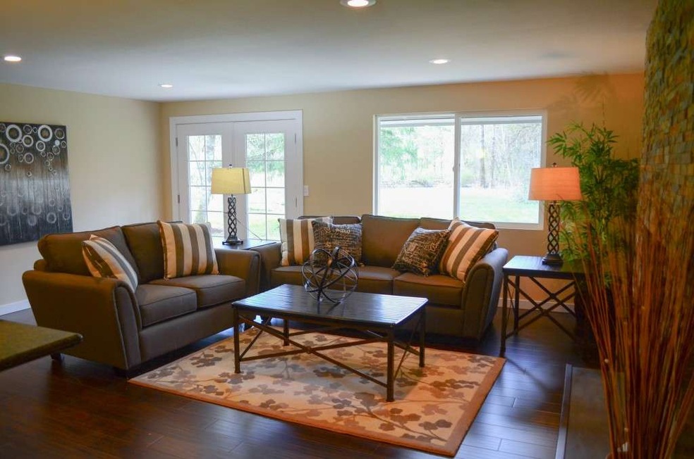 Gorgeous upscale remodel situated on nearly an acre lot. Open concept layout with stunning central fireplace. Fresh paint, hardwood floors, ceramic tiles, and modern fixtures throughout. Double pane windows, new siding, and gutters. Kitchen features beautiful cherry cabinetry, slab granite counters, backsplash, central island, and stainless steel appliances. Master with walk-in, en suite, and French doors leading out to deck. The serene 115' Cedar River waterfront completes this lovely setting.