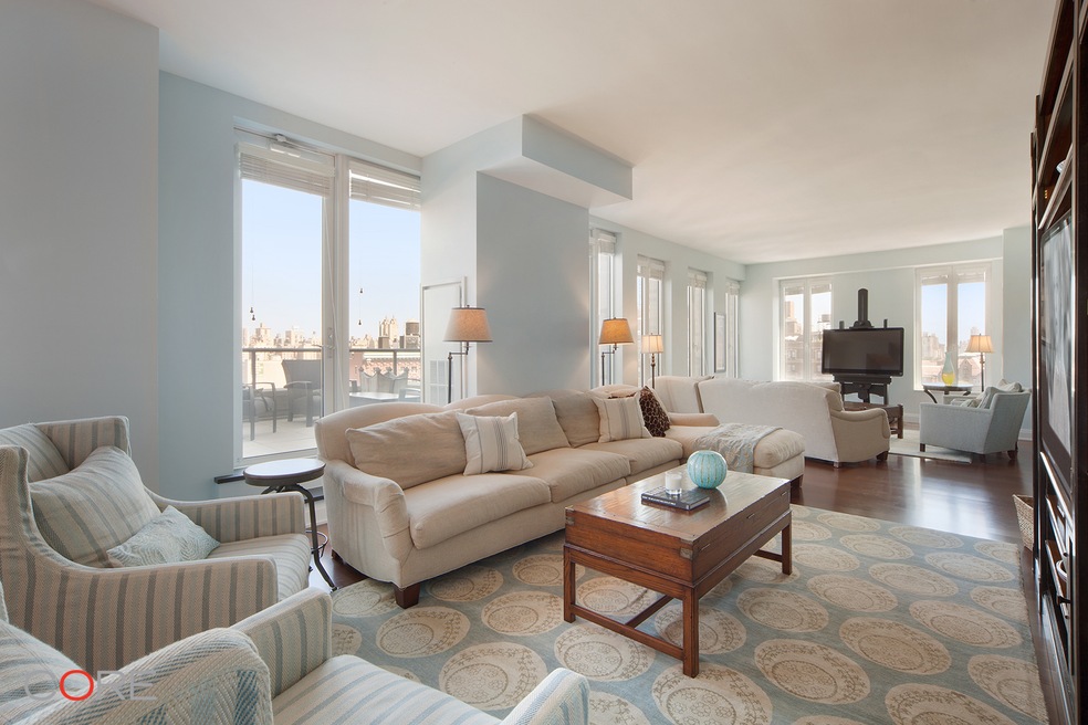 Enter onto your own private landing to this 16th floor 4-bedroom, 4-bathroom home. The entertainment area features an open kitchen with an expansive living/dining room that creates a loft-like feel. The living space opens onto a 786-square-foot terrace with western views to the Hudson River, northern city views and eastern views to the museum and Central Park. The eco-friendly chefs kitchen by Florense includes Caeserstone counters and sleek muted oak cabinetry, Miele and Viking appliances and a wine refrigerator. The bedroom wing is secluded with four bedrooms, each with southern exposures and individual baths. The master suite has a huge walk-in closet, dressing area and a luxurious master bath with a soaking tub and a spa-like glass shower. Additional features include 5-inch plank oak floors, mud room/laundry area with Miele washer/dryer, home office, individually-controlled central HVAC as well as an additional storage area in the basement.