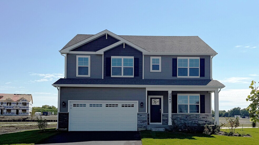 Discover yourself at 2447 Scribe St. Oswego, IL, a beautiful new home in The Sonoma Trails community. This home is ready for a quick Move in! This scenic corner homesite will include a fully sodded yard and landscape package. The Coventry floorplan offers 2,836 square feet of living space 4 bedrooms, 2.5 baths, Den/flex room, 9-foot ceilings on the first floor, and full basement! Entertaining will be easy in this open-concept kitchen and HUGE family room layout with a large kitchen island with an overhang for stools, 42-inch designer cabinetry with crown molding and soft close drawers. Additionally, the kitchen features a butler's pantry, modern stainless-steel appliances, quartz countertops, and easy-to-maintain luxury vinyl plank flooring throughout the entire first floor! Heading up the beautiful Rod Iron Stair case you will find More flexible space is waiting with the second-floor loft, offering unlimited potential to suit your needs. Enjoy your private getaway with your XL primary bedroom and en-suite. The primary bath includes a raised height dual sink, quartz top vanity, and walk-in shower with clear glass shower doors. Convenient walk-in laundry room, 3 additional bedrooms with a full second bath, and a linen closet compete the second floor. All D.R. Horton Chicago homes include our America's Smart Home Technology, featuring a smart video doorbell, smart Honeywell thermostat, Amazon Echo Pop, smart door lock, Deako smart light switched and more. Photos are of similar home and model home. Actual home built may vary. Builder Warranty 1-2-10. Exterior photo of actual home within construction process. Interior photos of similar home, actual home as built may vary