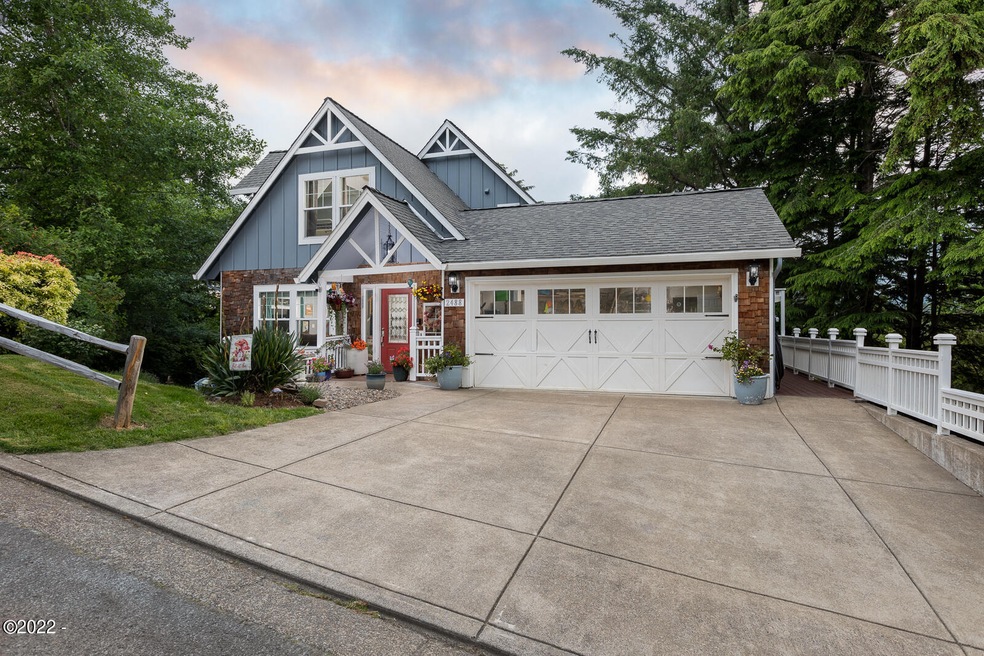 The perfect home for the laidback Oregon coast lifestyle you have been yearning for. Quality custom-built home sited in a quiet, centrally located, NE neighborhood. Includes the neighboring lot for additional yard space, boat/RV parking or room to build a shop with an apartment! Home has main level living with hardwood floors. Granite, SS appliances, and island in Kitchen with slider to the wrap around deck. 2 large bedrooms upstairs with full bath. Bonus room (Possible 4th Bedroom) is on the garden level with it's own full bathroom and separate entrance. 2 car attached garage and hobby/shop space. Southern exposure sitting area with water feature and firepit!