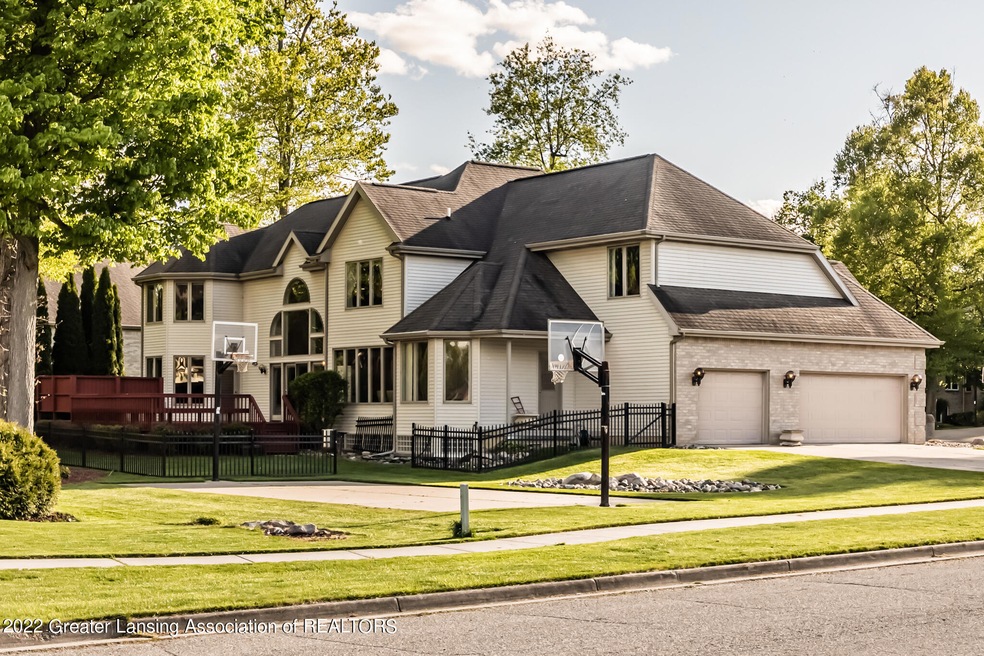 Welcome to this gorgeous home located in Lansing's Walmar Subdivision, which has 5 bedrooms, 5 ½ bathrooms, finished lower level and offers over 6200 sq. ft. of living space. As you step into the lovely foyer, you will experience a beautiful view of the formal dining room with bay window, the great room with floor to ceiling windows, bamboo flooring and a fireplace. The spacious kitchen has Corian countertops, a walk-in pantry and spacious breakfast nook. The primary bedroom has a nice sitting area, full bathroom with a large walk-in closet, and is located on the main level. The exquisite staircase leading to the second level has an additional 3 bedrooms, 3 bathrooms and a family/playroom. The finished lower level has a tremendous full bar area, sitting room and ample storage space. Off the very large back deck you have an amazing view of the full size basketball court.