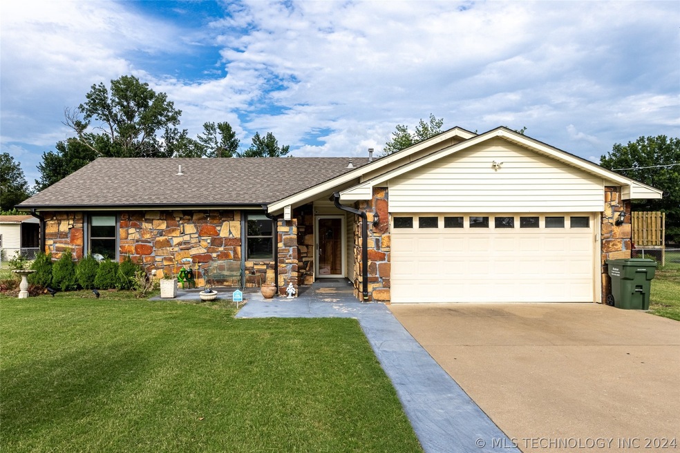 Don't miss out on this delightful 3-bedroom, 2-bathroom home with a 2-car garage, all nestled on a 1.10-acre fenced lot. This hidden gem is waiting for you to discover its charm. Enjoy your morning coffee in the welcoming (air controlled) Sunroom that is an extra unreported 300 sq ft that is not included in tax records. With USDA financing available, this property is move-in ready. Cozy up by the fireplace in the inviting living room or head outside to the spacious pergola with swings. Recent updates include new HVAC and hot water tank, extra insulation in the attic, a F5-rated safe room, guttering, and privacy fence. The property also features a 40x35 insulated shop with electric, RV parking, a chicken coop, apple and pear trees. Make sure to schedule a visit to this must-see home today!
