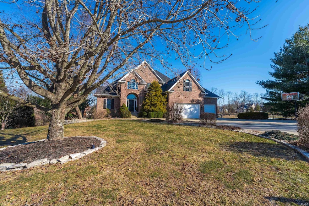 Stylish and inviting, this residence located in Amber Ridge on Bloomington’s southeast side boasts curb appeal combined with interior features rich in character and quality. Upon entering, this home showcases a soaring 2 story entry extending into the great room which features a stunning stone fireplace and eye-catching hickory wood flooring. Light is reflected beautifully with a southern exposure and opens into both the kitchen and the dining area perfect for entertaining. The formal dining room boasts a feature wall of bookshelves for collections of books or art and could double as a library or music space. A kitchen fit for a chef offers new quartz countertops which adorn the beautiful Graber crafted inset cabinetry. To top off the kitchen space is a wonderful banquette seating area making the kitchen seem the perfect place for a cup of coffee and conversation. This home includes a main floor primary suite with tray ceiling and an ensuite bathroom with a tiled shower, jetted spa tub and dual sinks. A park setting is the view from this owner’s retreat and makes the owner appreciate the landscaping and 50 plus trees that have been nurtured in this lush backyard. Also on the main level, there is another bedroom and full bathroom that can double as a nursery space, guest room, or office area as it also has a gorgeous view of the backyard vista. On the upper level, there are three spacious bedrooms featuring new carpeting for comfort. One of the bedrooms has an appealing ensuite bath with white subway tiled shower. Another full bathroom with two separate sink rooms and a shared tub is accessed off one of the bedrooms and the hallway. The full light walk out basement includes a custom cherry wood bar featuring an Irish pub atmosphere with a wine fridge and a bead board ceiling to finish out the look. A recreational area, full bathroom with custom shower, exercise room, storage area, pellet stove, and a 6th bedroom or optional office area round out this floor. The estate-sized parcel extends well beyond the fence line to a grove of trees and a large deck overlooks the greenspace and a lower level area perfect for adding a hot tub which is surrounded by a new crossbuck black fence. This special property has been well maintained and enhanced with well designed thought out quality finishes and elegance and is located minutes from Indiana University, Downtown Bloomington, and Lake Monroe.
