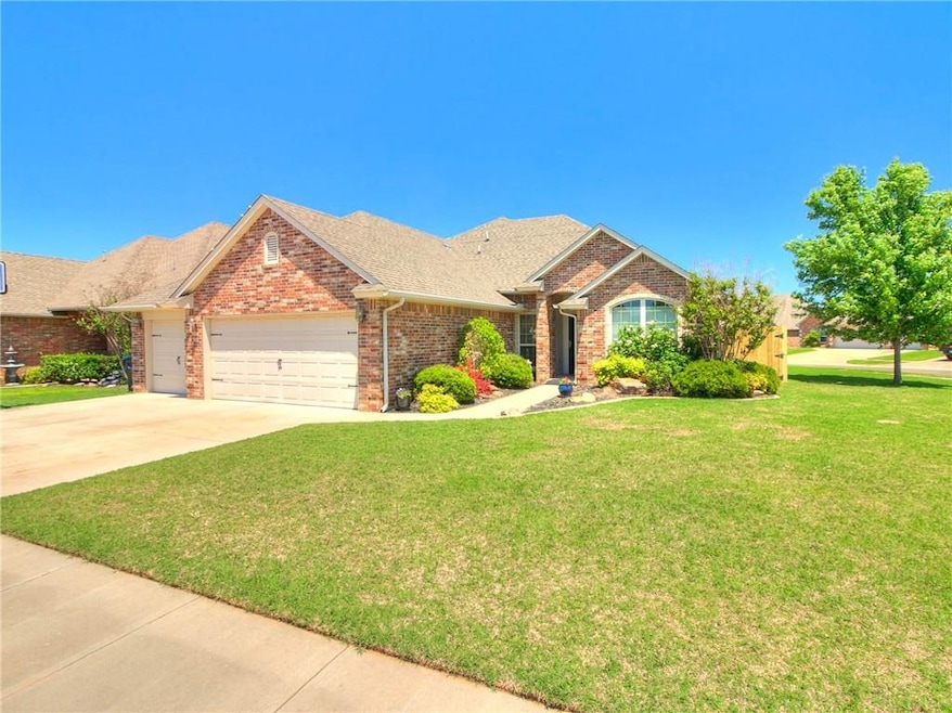 UPDATES HAVE BEEN DONE: New laminate plank flooring in living and office, new carpet in all bedrooms, in-ground shelter, and new fence!!! This beautiful home sits on a corner lot in a established gated community with close proximity to the Turnpike, I40, shopping, restaurants, and businesses. the house has 3 car garage, beautiful landscaping, nice back yard with covered patio. The entrance welcomes you into an open concept living area with corner fireplace and natural sunlight. Kitchen entails granite counter-top, wood cabinets, vented hood, whirlpool appliances, double sink, and a dining area. The office also with new flooring and double doors. The split floor-plan allows for the master suite to be separate from all other bedrooms. Master bath has double vanity, jetted tub, shower, and a larger walk-in closet. Bedrooms are great size with larger closets. Great community which offers community pool, clubhouse, playground, and HOA community events for kids and families.