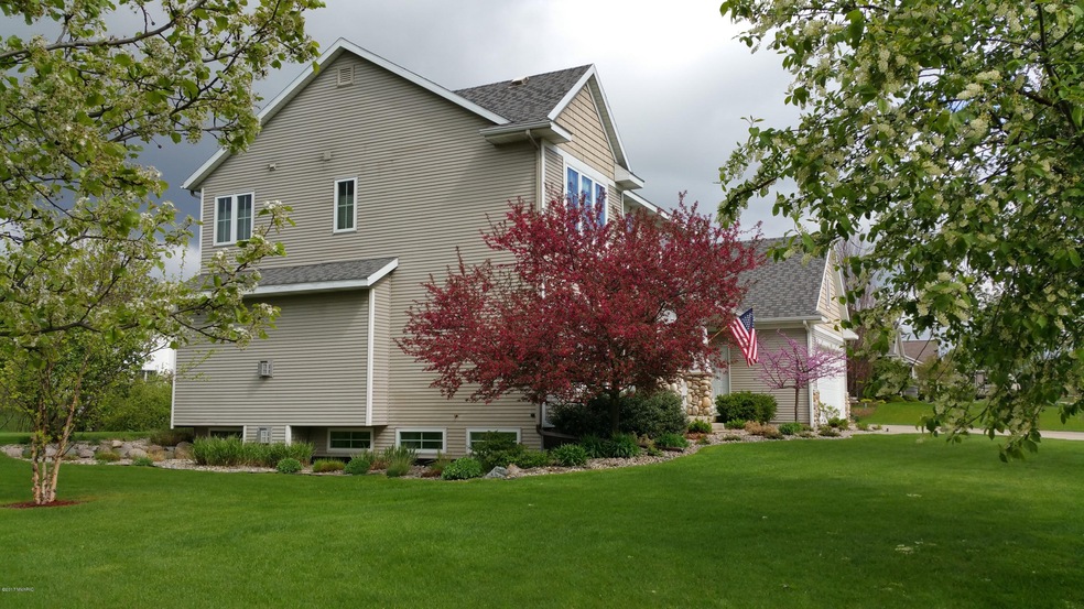 Welcome home! Come see this beautiful 2 story, 3+ bedroom /3 1⁄2 bath, 2001 Parade home custom built by Roger VanDyke. Situated on a beautifully landscaped corner lot in the desirable Jason Ridge neighborhood located in Grandville school district. Spacious open floor plan is both inviting and practical with plenty of space to entertain family and friends. The main floor includes a very spacious kitchen with ample cupboard and counter space, extra-large island, pantry, as well as an eating area and built in desk. The spacious main floor also includes an inviting family room with custom built-ins and beautiful gas fireplace, as well as a formal dining room, full office (or den/music room), main floor laundry, including space for sewing or craft area, large custom lockers, heated boot bench and and half bath. A beautiful 4 season porch is located off the back of the home for quiet relaxation. The second floor offers a large master suite with a very spacious private bathroom and walk-in closet. 2 large bedrooms with ample closet space and built in desks and a second bath with double vanity and separate tub/toilet room complete the second floor. The finished basement includes a 4th non-conforming bedroom, full bath, extra-large family room with gas fireplace and a kitchenette- great for entertaining. This home also has a 3 stall garage with extra storage space, custom built cabinets, underground sprinkling system, central vacuum, CAT5 wiring, zoned heating and cooling, newer hot water heater and ample storage space throughout. Enjoy the beautifully landscaped, private patio with ample space for entertaining, grilling and a fire pit. There is even a space for a hot tub which already has the electric hookup! This great entertaining home is wired for sound throughout, including the patio for added enjoyment! This beautifully maintained family home is move in ready, so bring your approved buyers.