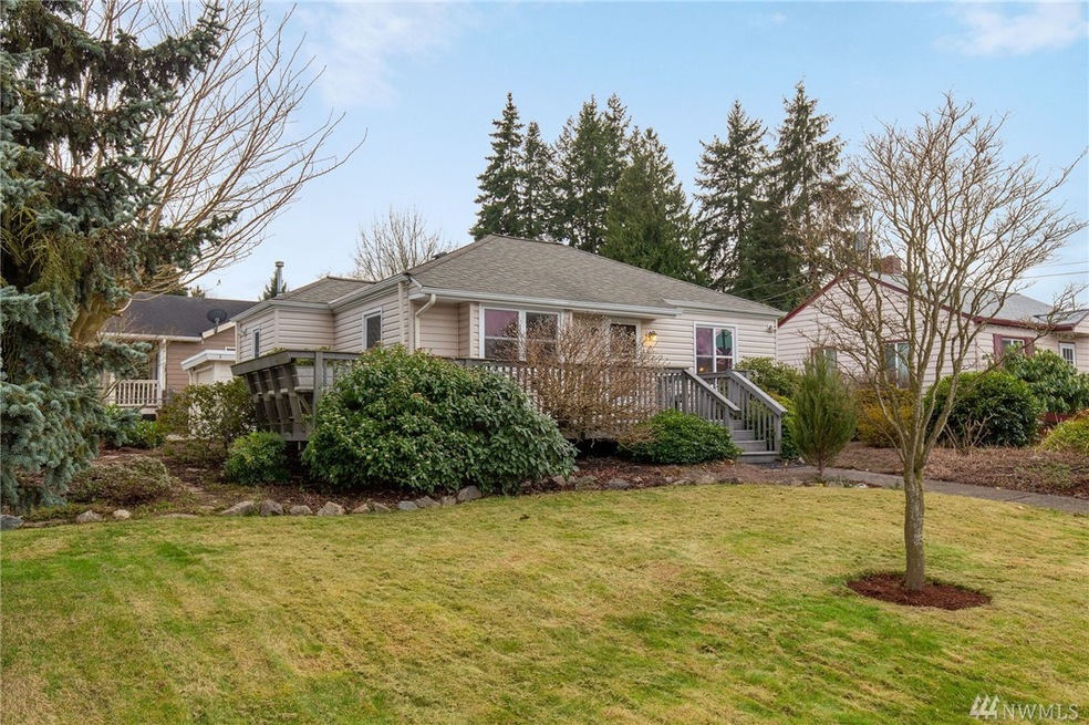 Immaculately maintained one story home in quiet North Everett. Enjoy morning coffee and evening sunsets on the entertainment sized trex deck with built in seating. Corner lot with award winning mature landscaping provides year round greenery. Interior features include newer double paned windows, spacious living room, updated bath and utility room. Back patio features motorized awning to enjoy the coming sunny summer days. Detached 330 sq ft garage with workbench provides ample storage for the PNW lifestyle. Abundant off-street parking as well. Sought after location near thriving downtown Everett's shopping, dining, parks & more. Ideal location for commuters with easy freeway access and nearby Everett Station.