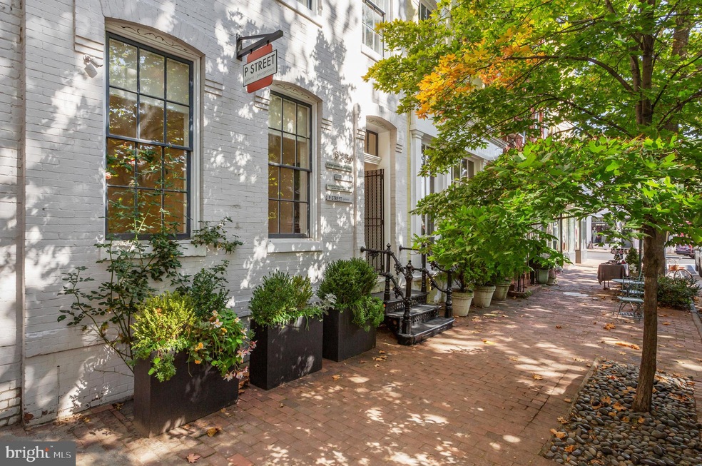 A rare opportunity to live in a top floor unit and use or lease the four other units as office/gallery space. The property is located on a beautiful tree-lined street in historic Georgetown and has been updated with high-quality and tasteful improvements. The front door accesses the main level unit, which includes a large office/gallery/retail space with a fireplace, a powder room, and secondary kitchen area with microwave and mini refrigerator. The gallery has its own separate entrance and there is an additional access from the back. The second level has three spacious offices, each filled with an abundance of light through large windows. The primary kitchen is on this level, which has a large window, sink, refrigerator, and microwave. There is also a powder room and beautiful built-ins off the hallway. The third and uppermost level features an open floor plan with floating desks, a wood-burning fireplace, and skylight. The third level offers a unique opportunity for development into an apartment. The basement is perfect for extra storage and mechanicals. There is a small rear terrace as well.