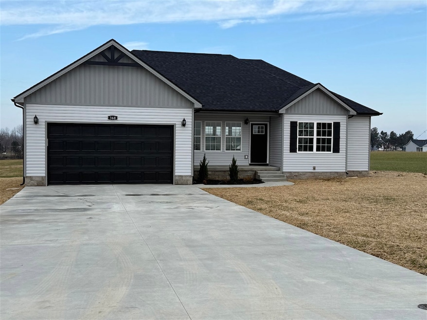 Welcome home to this beautiful new construction 3 bed, 2 bath home, thoughtfully designed for comfort, space, and the everyday needs of a growing family. With nearly 1,400 sq ft on a generous country lot, this home gives your family room to breathe, play, and make memories that last a lifetime. Step inside to a bright, open floor plan where vaulted ceilings and LED lighting create a warm, welcoming space for family dinners, movie nights, and weekend gatherings. The kitchen is truly the heart of the home-featuring white farmhouse soft-close cabinets, granite countertops, a large island for homework or snacks, and stainless steel appliances ready for your next family meal. Parents will love the privacy of the master suite, tucked quietly behind the kitchen. It offers a tray ceiling, walk-in closet, and patio doors leading to the backyard-perfect for stepping out with a morning coffee. The spacious bath includes a soaking tub for relaxing after a long day. The kids' bedrooms are located on the opposite side of the home. giving everyone their own space while still keeping the family close. These bedrooms share a full bath and provide plenty of room for toys, sleepovers, and growing into their own space. Outside, the large yard is ideal for playsets, pets, or backyard barbeques. The home also features an attached 2-car garage, a concrete driveway that will last for years, covered front porch, and a peaceful back deck where your family can unwind in the evenings. If you're dreaming of a place where your family can settle in, grow, and feel at home, this new construction beauty is ready to welcome you. Come see it-you'll instantly picture your family living here!