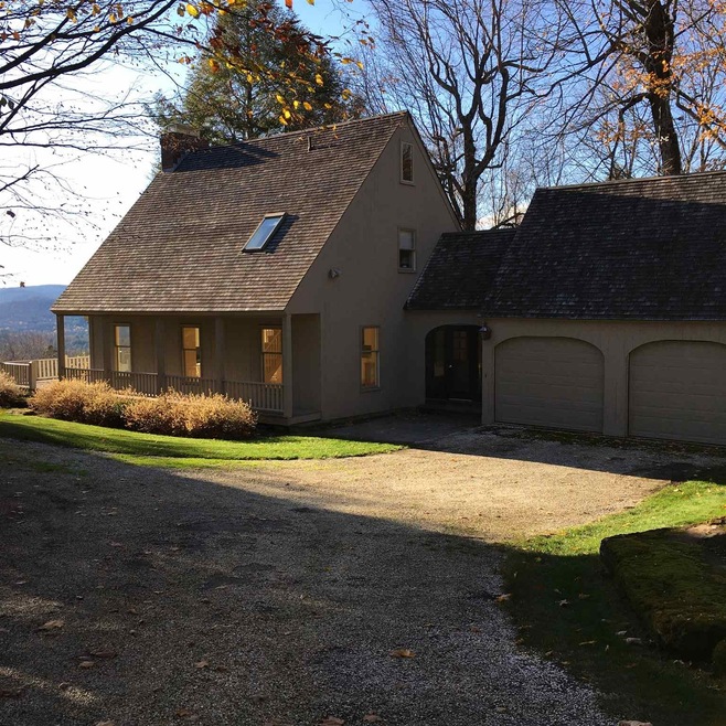 Enjoy stunning long range views from this contemporary cape! The mid-century modern interior design is a beautiful composition of exposed beams, clean and crisp open concept living/dining space, hardwood floors, and dramatic floor to ceiling windows that frame the living room fireplace and capture the breathtaking view. The upper level layout offers a spacious master bedroom suite complete with a fireplace and ensuite bath. The additional two bedrooms can be used as a separate guest suite with shared bath along with a bonus room for either bunk beds or an office. Attached two car garage, 1st floor laundry, and large deck for entertaining. This property neighbors the world renowned Twin Farms Resort and is a short ride to wonderful shopping, dining and the arts in Barnard, Woodstock and Pomfret. Enjoy superb multi-seasonal recreation at nearby Silver Lake, Killington, Suicide Six, Marsh-Billings-Rockefeller National Park, and the Woodstock Golf and Tennis Club. For more information about this property please contact Mary Mayhew @ Snyder Donegan Real Estate Group.