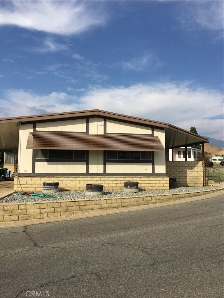 Located in a senior community close to medical, shopping, restaurants. Nice clean park with affordable space rent. This is a 2 bedroom 1.75 bath. Over 1600 sq. ft. with the extra large room addition, small covered separate patio with awnings on both sides of the house. Also has a large workshop, storage area.